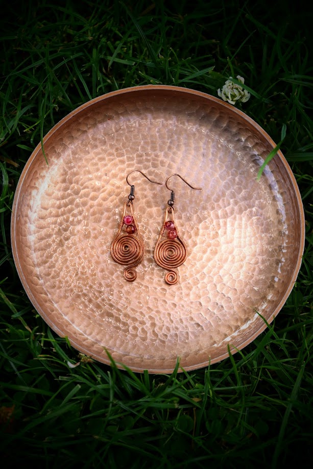 Materialerne der er brugt er kobber tråd og turmalin perler. .