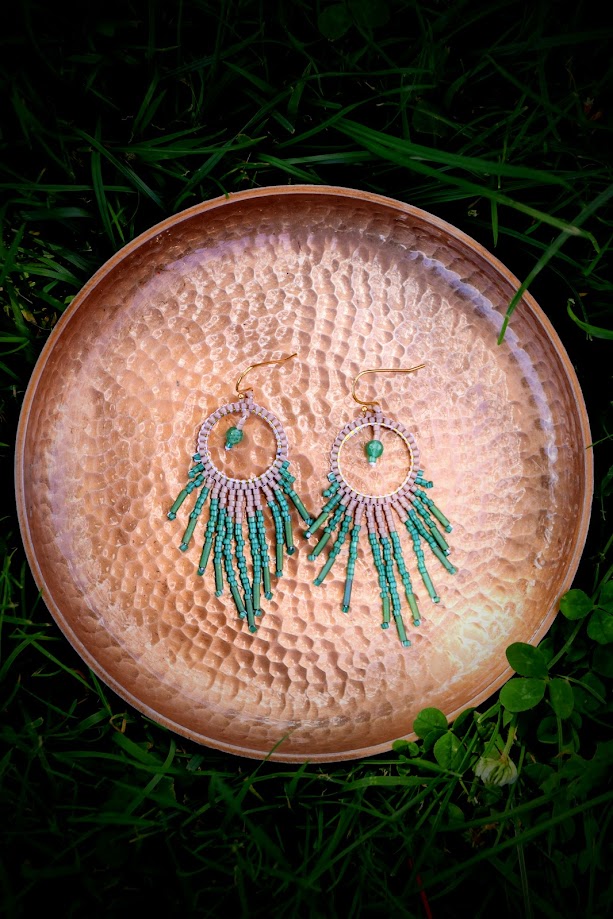 Øreringe er lavet med grønne miyuki perler og en grøn aventurin.