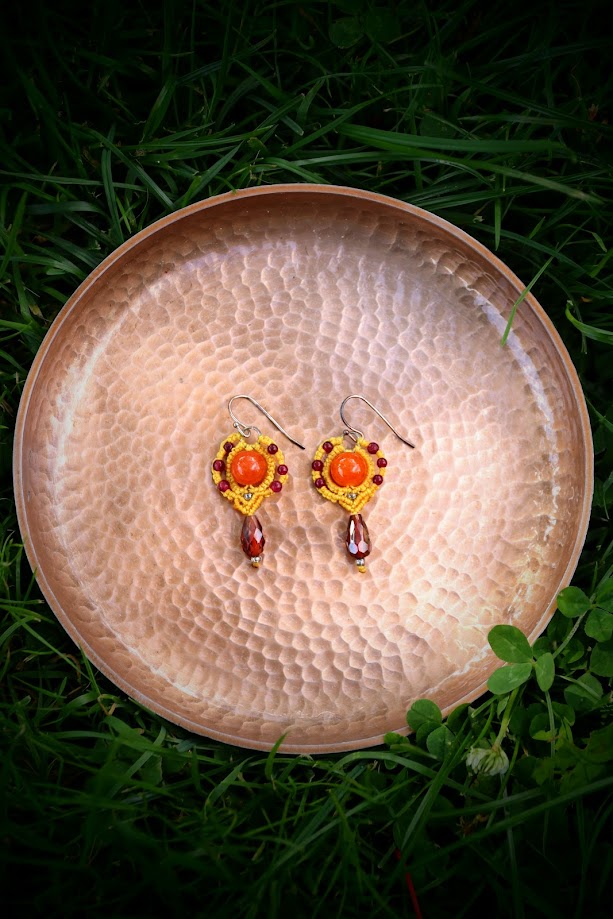 Øreringene er lavet med micro macrame knytteteknik. de smukke sten er: