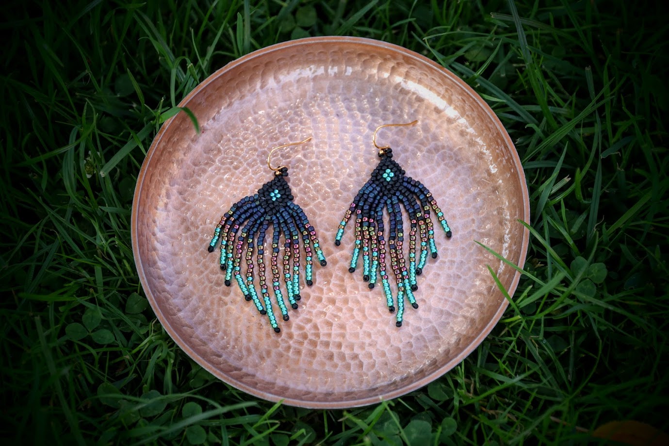 Sort, grøn turkis og changerende kobber perler.